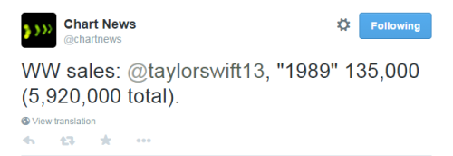 Буквально за неделю пятый альбом мисс Свифт "1989" раскупился тиражом 135 тысяч! Теперь общие продажи составляют больше 5 миллионов.