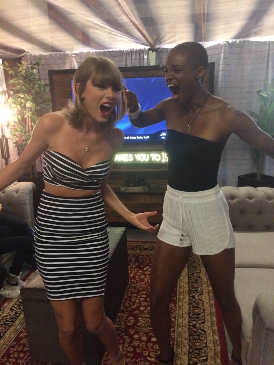 Стоящую здесь в платье, смотрящую на закат, милый.